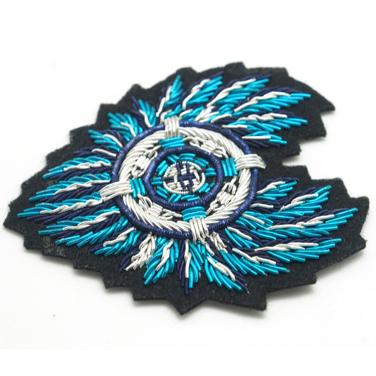印度絲繡花章,早起源于印度,故又稱印度絲徽章、銅絲徽章、彈簧絲徽章、印度繡花章、金屬刺繡章等,采用印度特有的金屬線為主要材料,并用傳統(tǒng)的手工藝?yán)C花,一針一線刺繡而成。其手工精細(xì),令人嘆為觀止,繡出來(lái)的產(chǎn)品高檔華麗,層次分明。