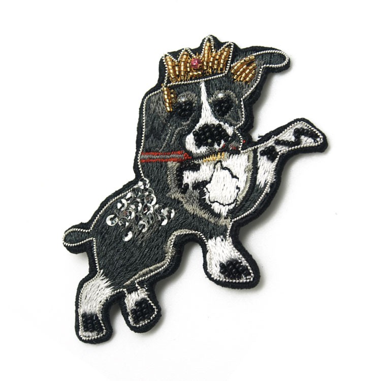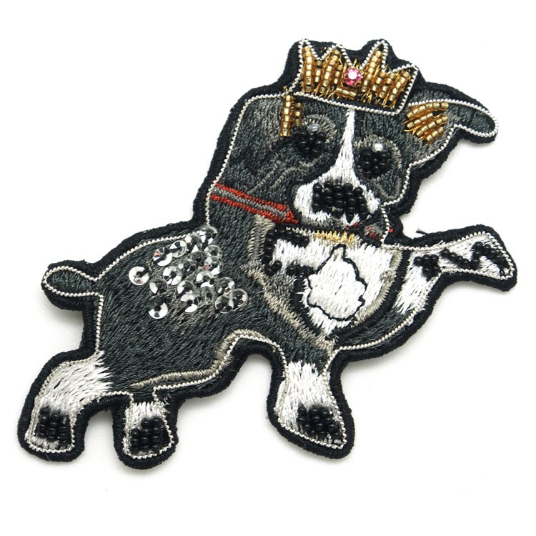 新款特種繡花章卡通小狗手工印度繡布貼服裝鞋帽金屬絲徽章定做